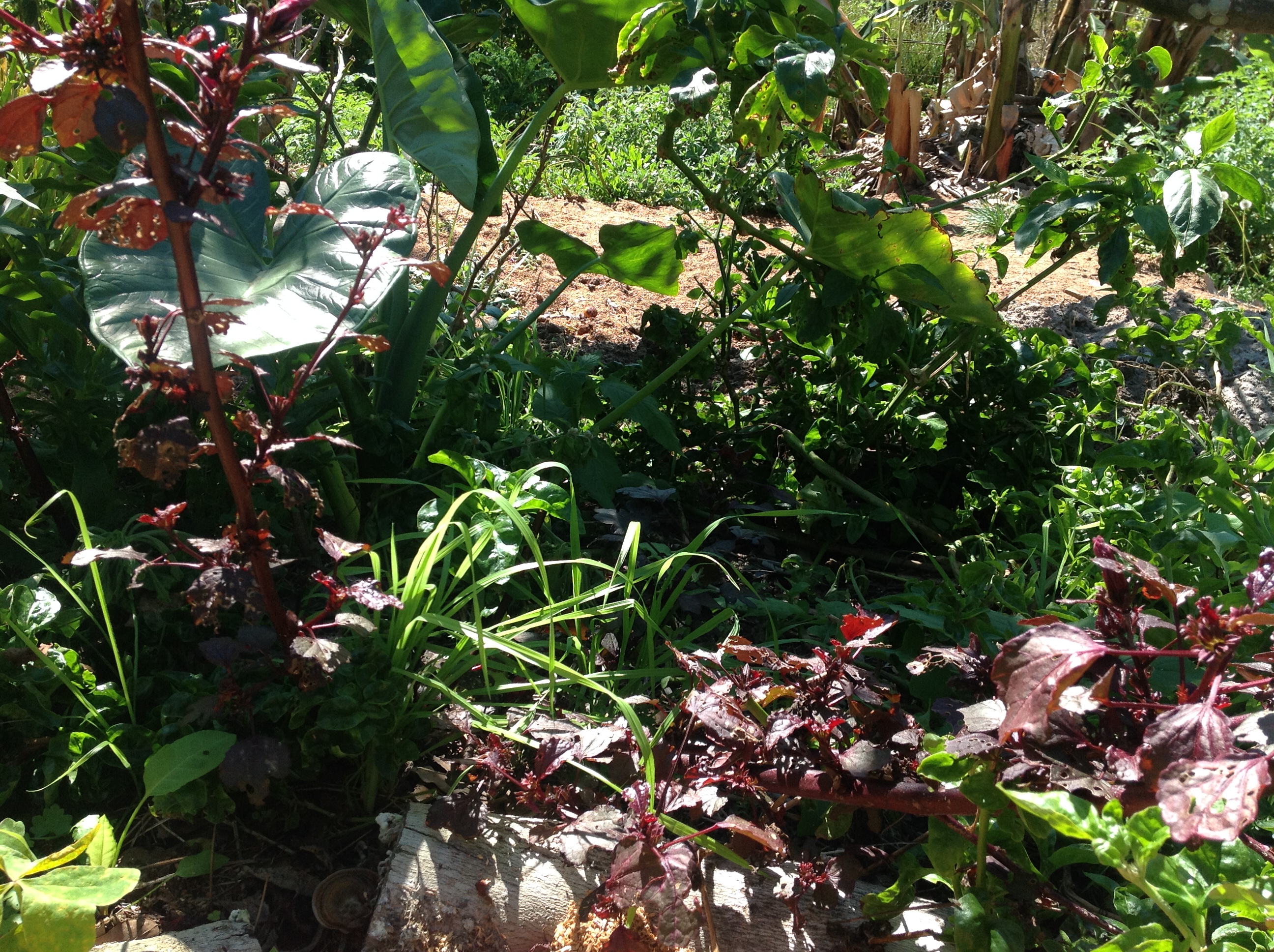 Hibiscus and taro in the permaculture garden at Maungaraeeda, diy food and health