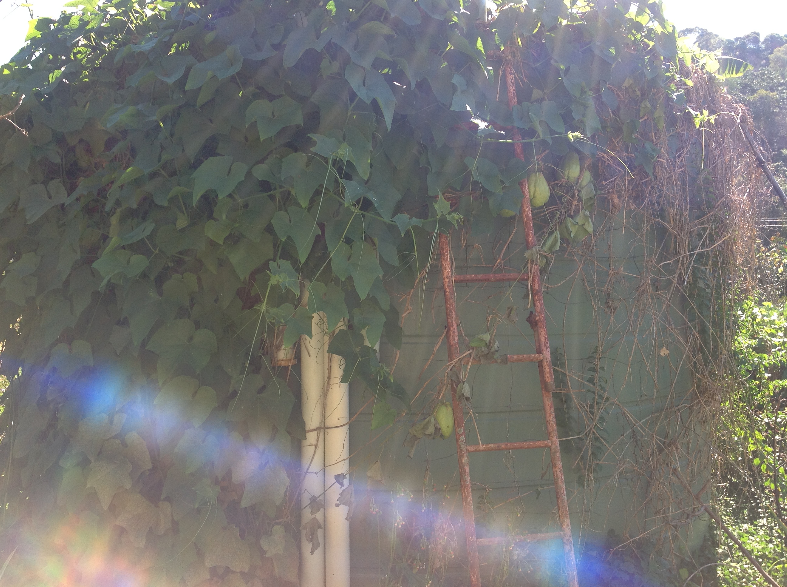 Choko vine on the rain water tank